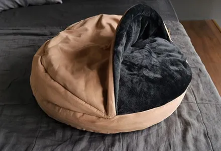 This dog bed is compact, making it an ideal fit for puppies and miniature to medium breed dogs such as Dachshunds or Corgis.