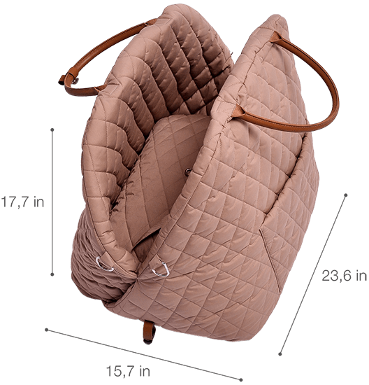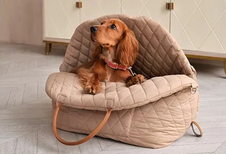 This dog carrier bag is suitable for dogs of small and medium breeds, such as mini Dachshunds or Corgis, as well as for cars of any model.
