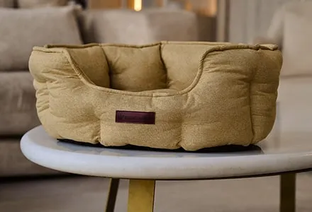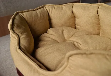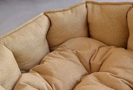 Our dog bed has a low front and high sides to allow your pet to easily enter the bed and comfortably fit inside.